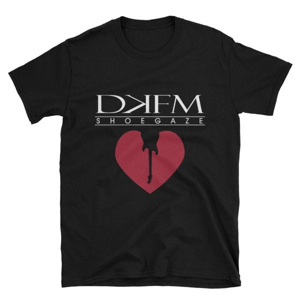 In classic black or navy blue, this is the “new school” DKFM shirt that’s become popular lately. This shirt is ultra comfortable, and its modern cut makes it stylish, too. The rolled shoulder gives it a better fit, and the double-stitched hems make it long-lasting. Because shoegaze is forever.